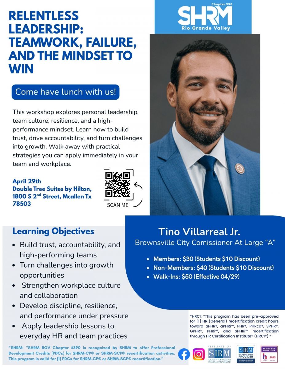 SHRM Rio Grande Valley is proud to announce that we have collaborated with the SHRM UTRGV student chapter in Edinburg to revive the SHRM RGV 390 Mentoring Program.